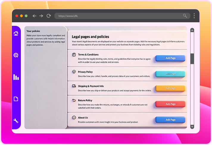 Privacy Policy, Terms, Disclaimer—all done for you so you're compliant
